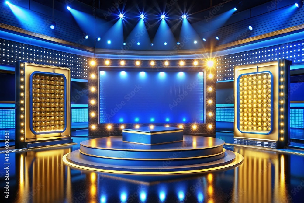 Game Show Set Design: Bright Stage with Empty Left Side for Host, Copy Space #1367610351