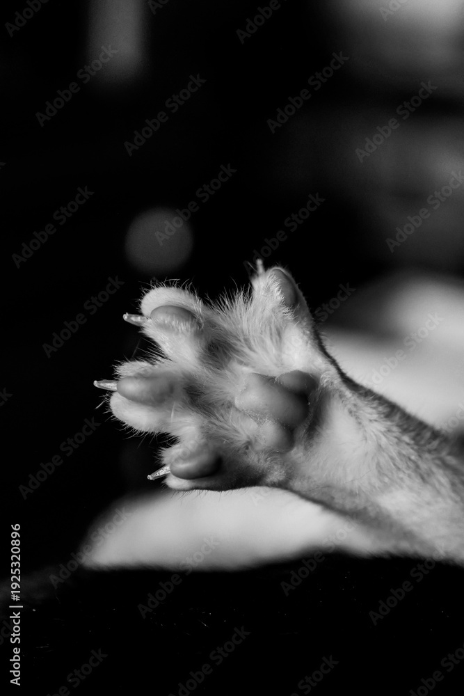Garras, pelaje, blanco, negro, contraste, minúsculo, felino, textura, sombra, detalle, naturaleza, afilado, suavidad #1925320896