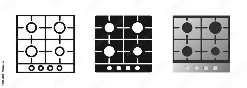 Gas hob vector set. Kitchen hob, appliances store logo #613162700