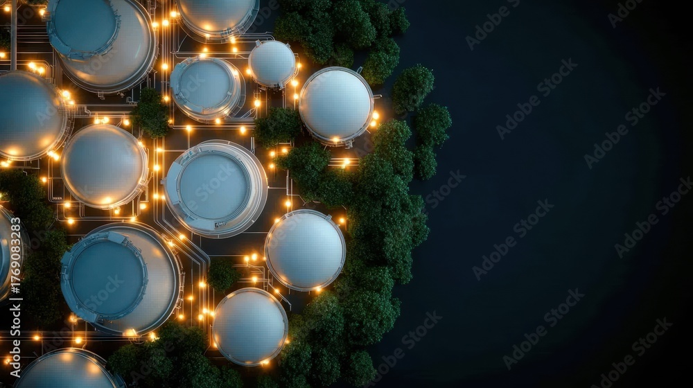 Gas Oil and gas refinery with massive machinery processing fuel resources. #1769083283