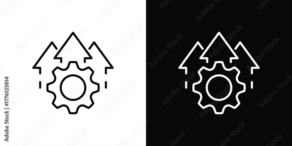 gear growth icon. thin line design representing progress, productivity boost, innovation, technical advancement, and system efficiency improvement. vector illustration #1776125814