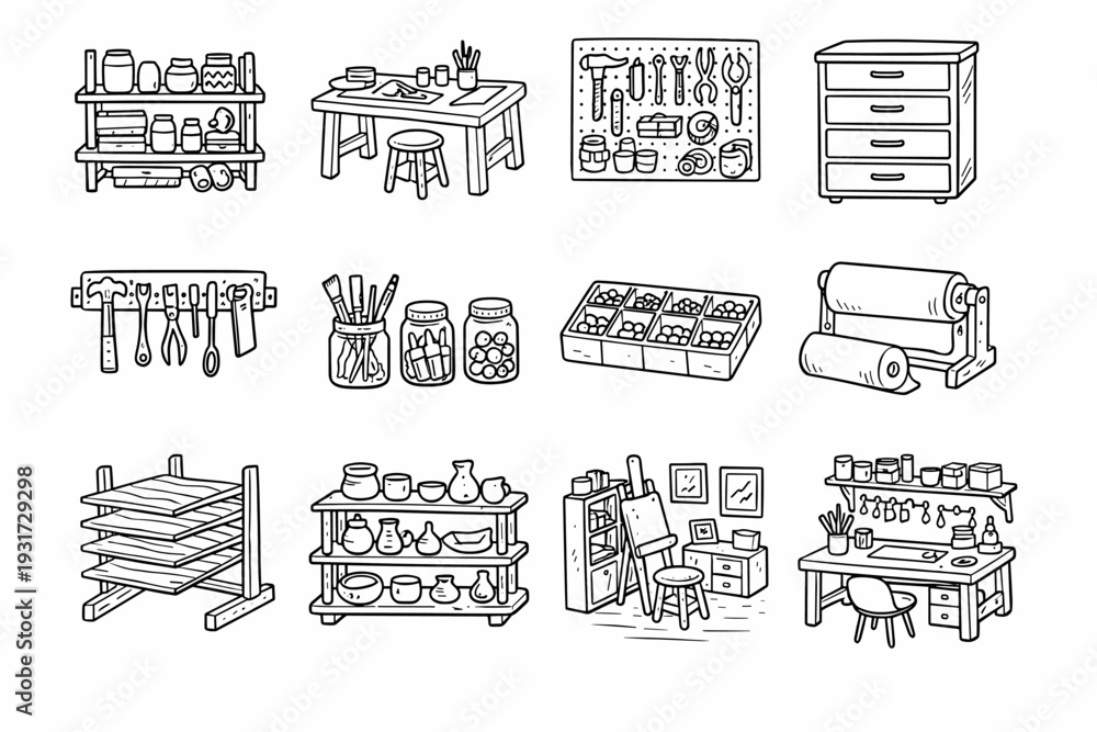 Generation vector roll panel simple pegboard image icon parts workspace rack stand #1931729298