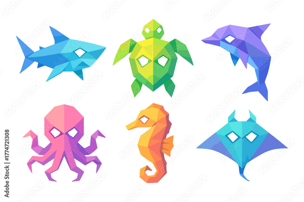 Geometric marine life collection featuring colorful low poly sea creatures #1774721308