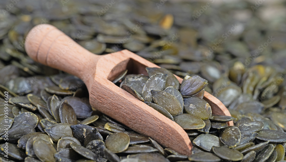 Geröstete Kürbiskerne in einer Nahaufnahme #1935934602