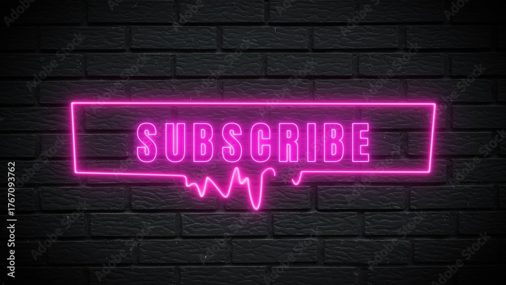 Get viewers clicking with this electrifying neon subscribe call to action on dark brick wall for modern content creators #1767093762