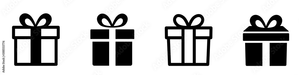 Gift box icons set. Gift boxes line style. Christmas gift. Surprising gift box flat style collection - stock vector. #388553776