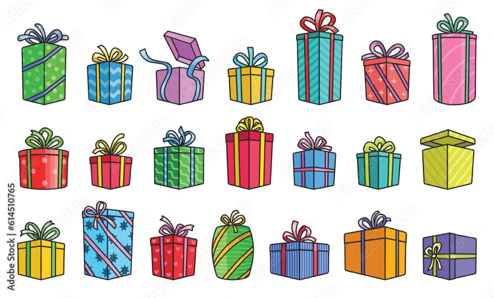Gift box vector color set icon. Illustration of isolated color icon gift box with ribbon. Vector illustration set christmas present. #614510765