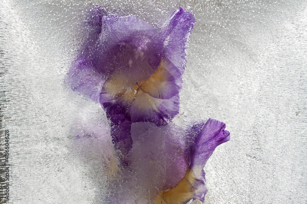gladiolus flower, flowers in ice, frozen flowers, garden flowers #486504628