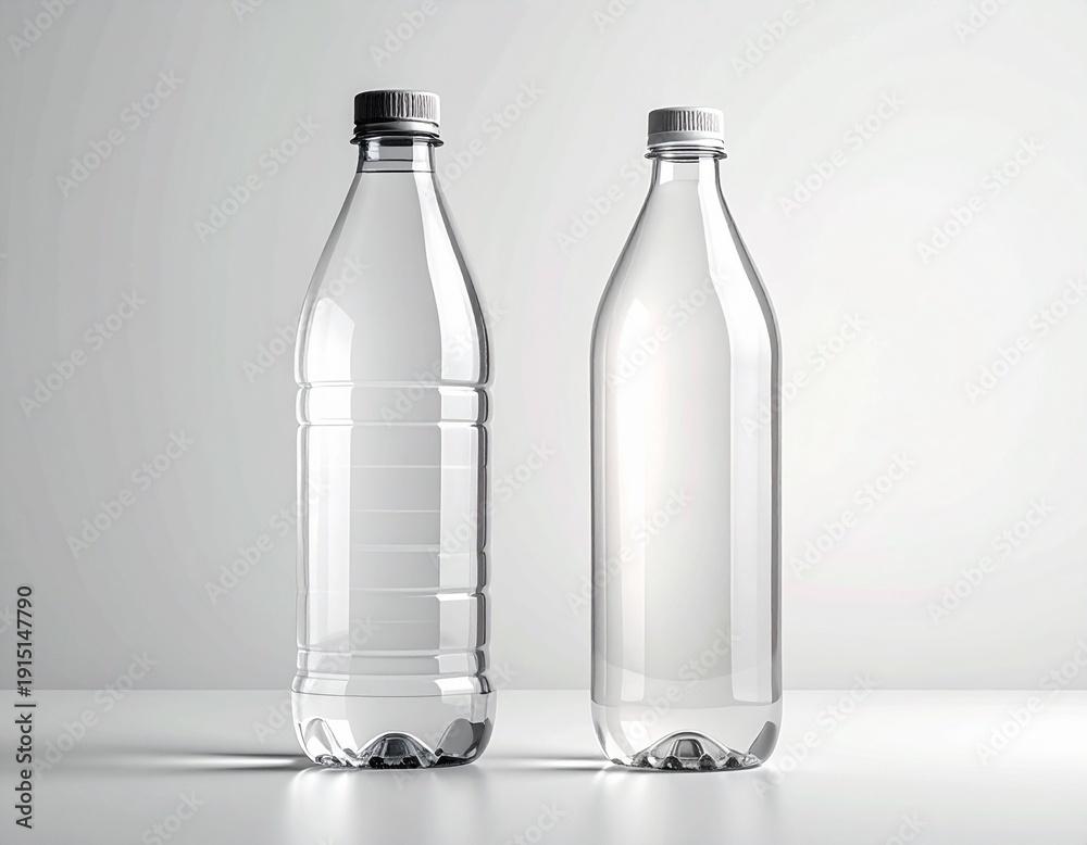 Glasflasche und Plastikflasche im direkten Vergleich als Nachhaltigkeitskonzept #1915147790