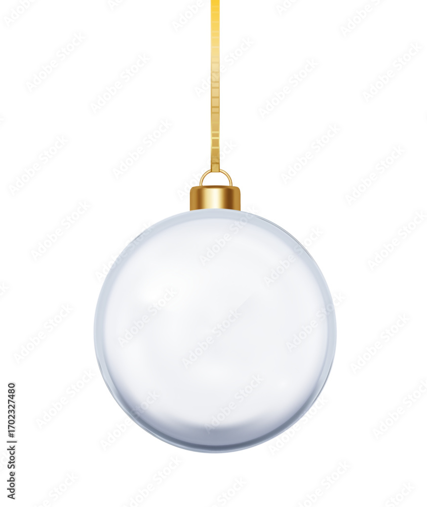 Glass Christmas balls hanging on ribbons. Transparent baubles festive holiday vector #1702327480