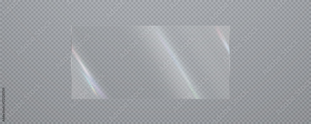 Glass effect, set of mirrors on transparent background, transparent glass showcase, mirror, window. Realistic glossy plate with glare, vector png. #1725280769