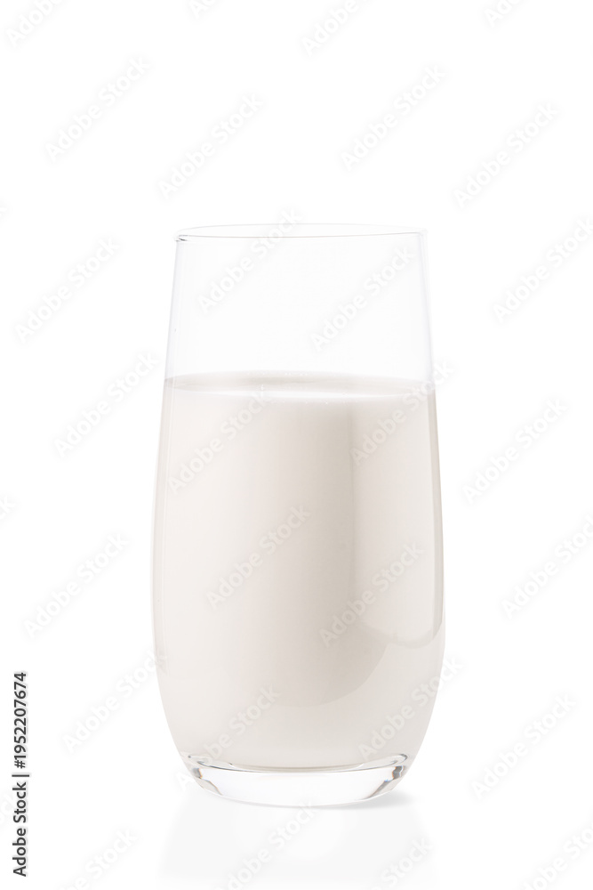 Glass glass of white milk on a pure white background isolate vertical photo #1952207674
