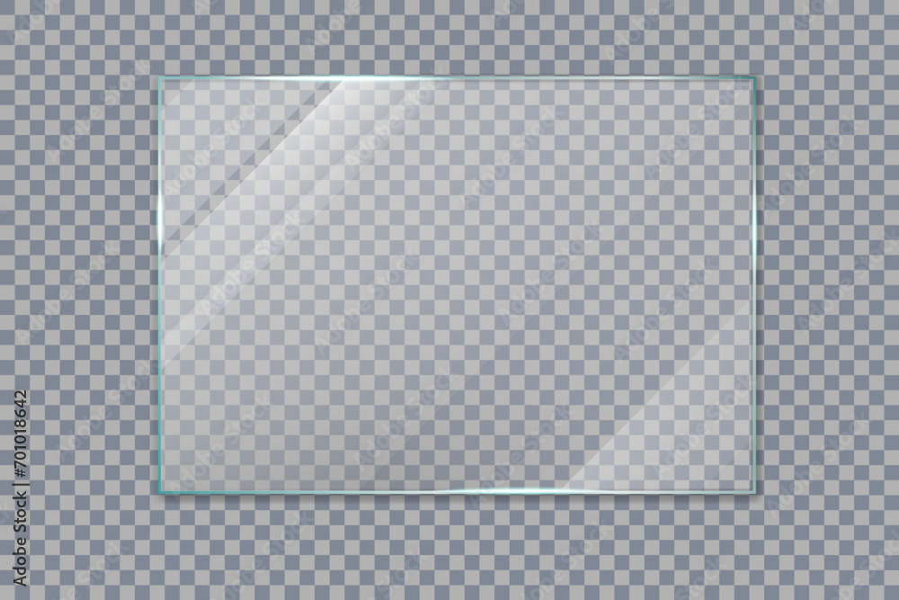 Glass window. Transparent screen effect. Shine glossy plastic glare frame. 3D mirror. Clear rectangular plate with gloss. Acrylic showcase. Plexiglas texture. Vector isolated background #701018642