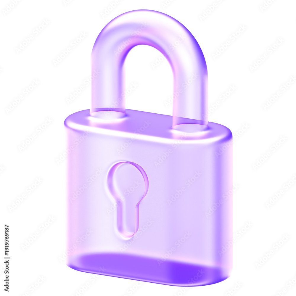 Glassmorphism padlock icon representing cybersecurity and data privacy minimalist translucent security lock with glossy gradient finish for premium UI design #1919769187