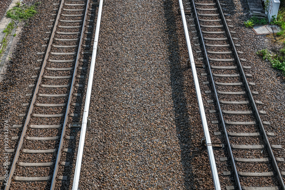 Gleise der Eisenbahnstrecke in Berlin #1923932874