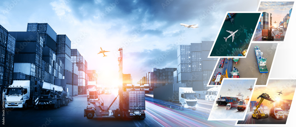 Global business of Container Cargo freight train for Business logistics concept, Air cargo trucking, Rail transportation and maritime shipping, Online goods orders worldwide #1966314681