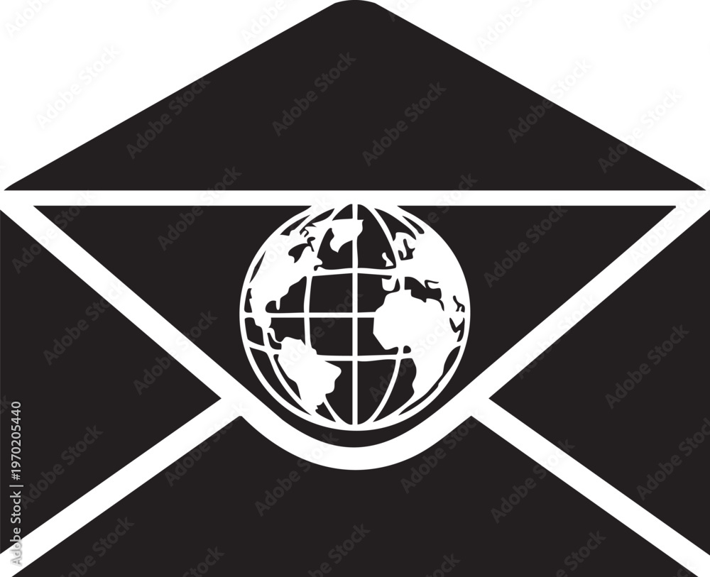 Global Communication, Envelope Icon, Earth Globe, Black and White Vector #1970205440