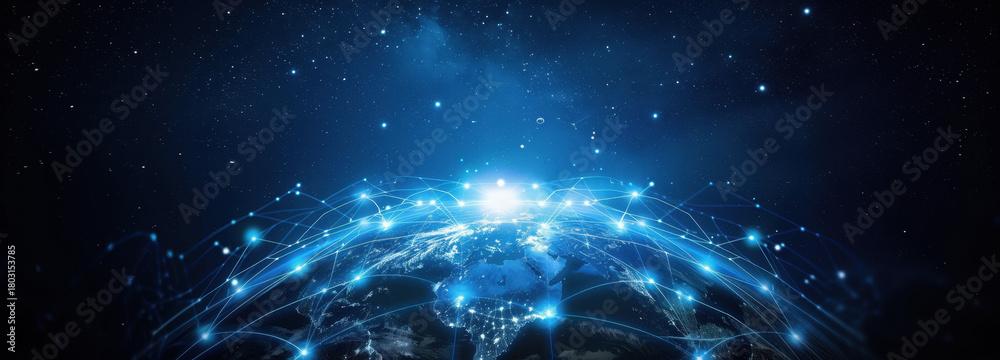 Global Digital Network: A radiant depiction of the digital world, where intricate connections and data streams intertwine across the globe. #1803153785