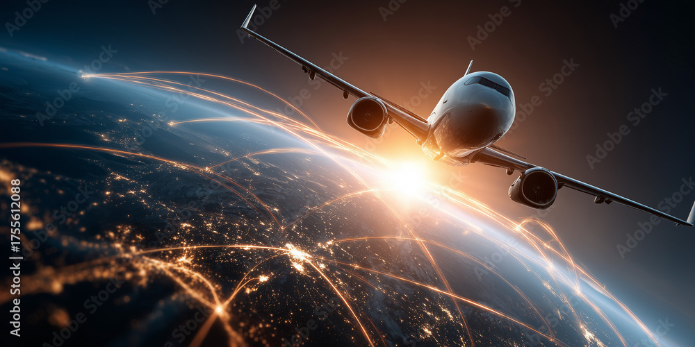 Global trade and sanctions impacting air travel across the world aerial view of aviation networks and trade routes #1755612088