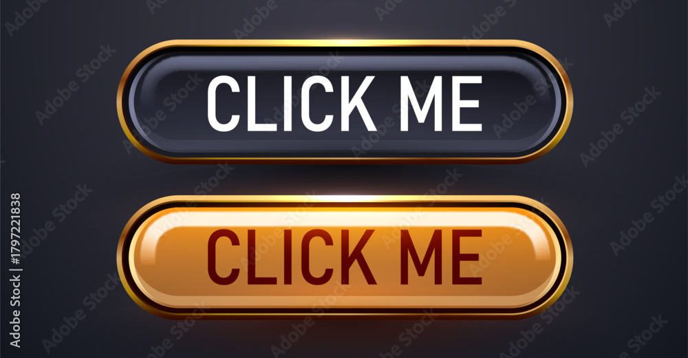 Glossy CLICK ME buttons in dark and gold for modern web design. #1797221838