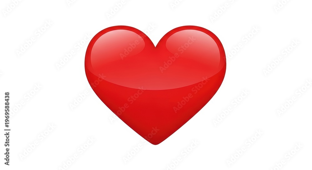 Glossy red heart emoji icon, vibrant 3D love symbol on white background, shiny romantic heart shape for social media and digital communication #1969588438
