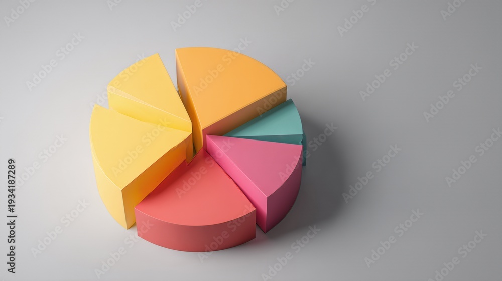 Glowing analytics pie chart shows data segments in bright colors on a plain background #1934187289