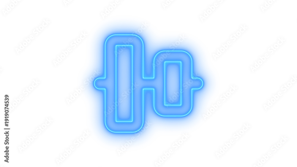 Glowing blue neon barbell icon, a vibrant symbol of fitness, strength, and active lifestyle for sports, gym branding, and graphic design isolated on transparent background. #1919074539