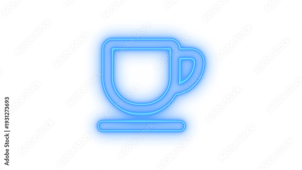 Glowing colorful neon line art coffee cup and saucer icon, perfect for cafe, restaurant, or modern technology UI design elements, isolated on transparent background. #1931273693