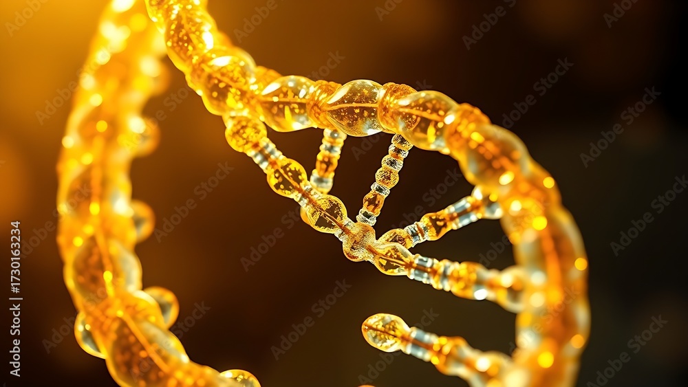 Glowing DNA helix intertwined with golden strands, symbolizing regenerative medicine breakthroughs. #1730163234