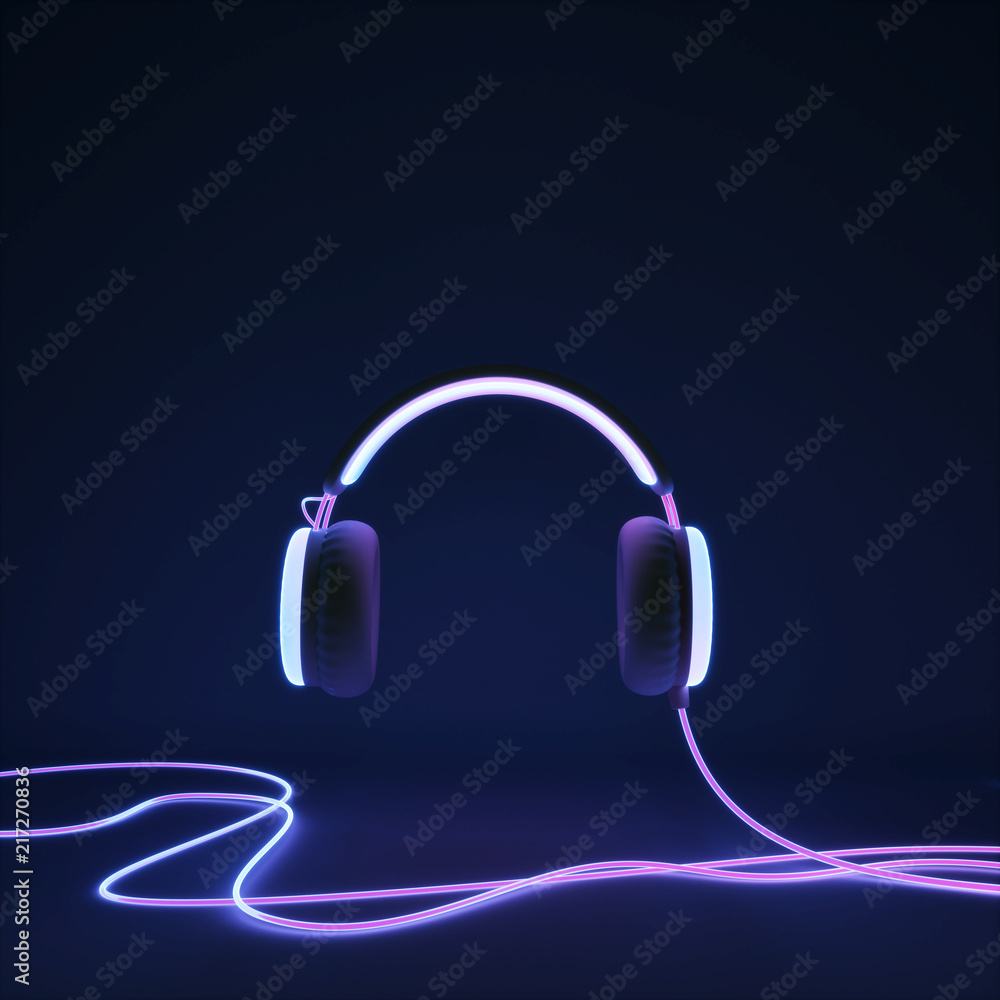 Glowing headphone neon on dark background. 3d render #217270836