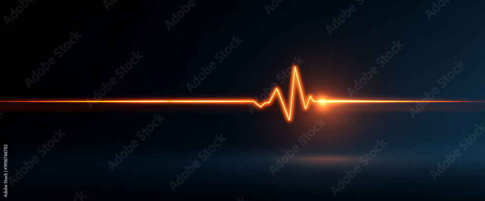 Glowing orange heartbeat pulse line on dark background symbolizing life, energy, and medical monitoring with vibrant light effect and futuristic style #1906766782