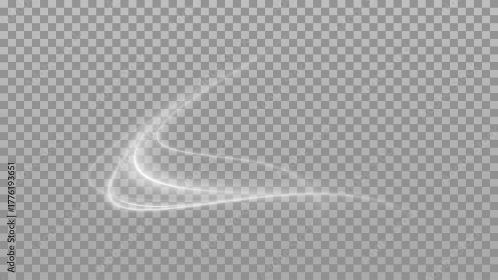Glowing white spiral light effect. Bright swirl with sparkle and shimmer isolated on transparent background. White magic light swirl. Shining silver spiral lines with glowing effect. #1776193651