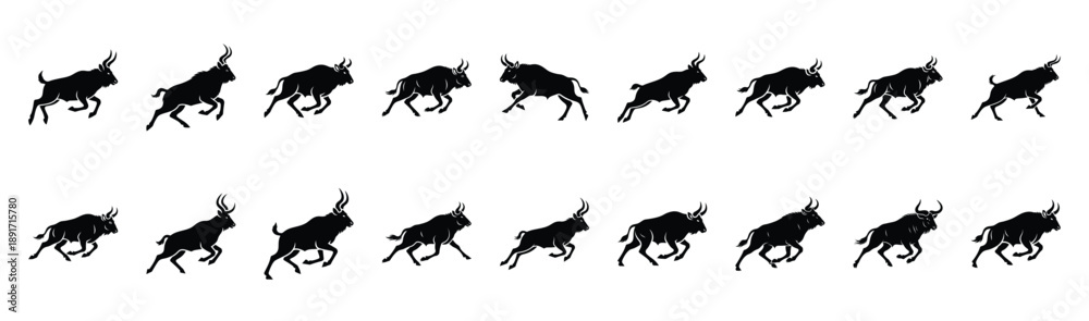 gnu running pose silhouette illustration collection. Animals drawing illustration isolated on white background. #1891715780
