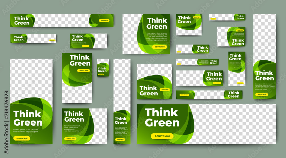 Go Green web banners template design for ads. Abstract green banner set with multisize for multipurpose. vector #718476823