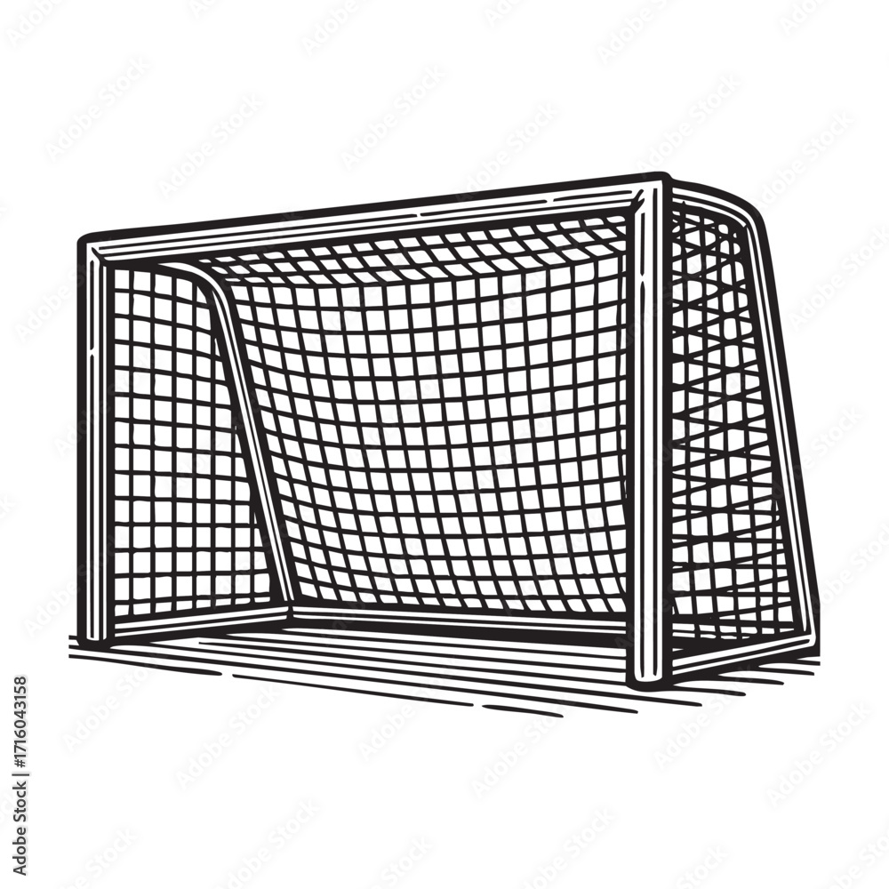goal soccer Black and White Engraving Vector Illustration #1716043158