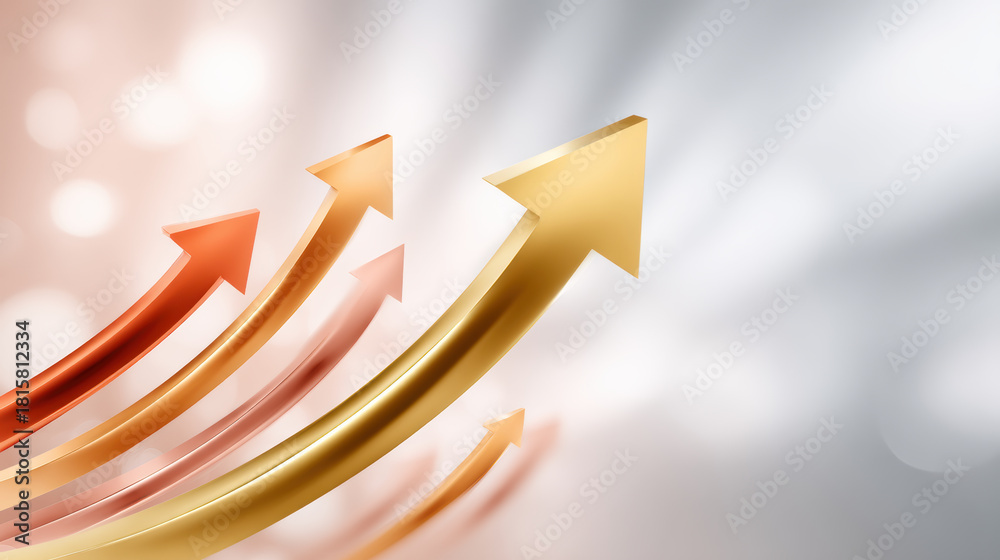 Gold arrow growth chart with rising metallic arrows in dynamic motion #1815812334