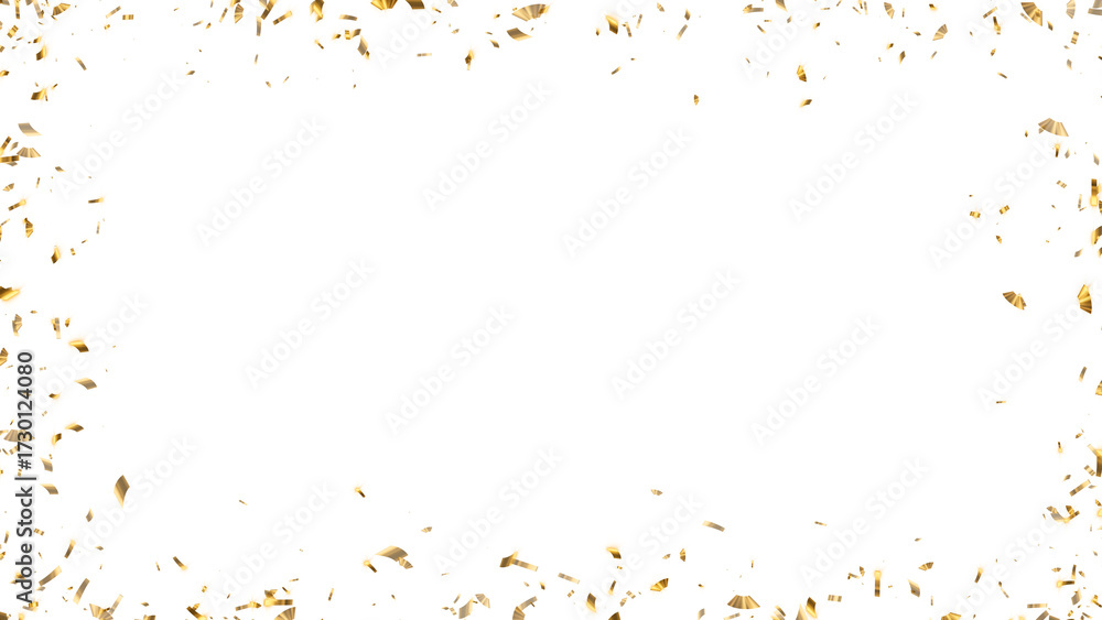 gold metallic confetti rain explosion border frame isolated on transparent background, png golden birthday party and anniversary celebration overlay social media design element #1730124080