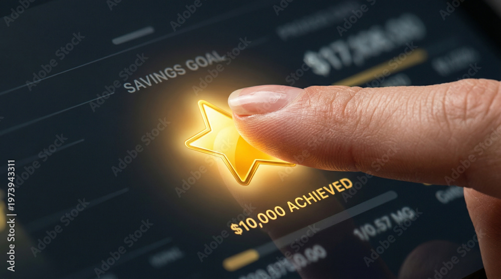 Gold star savings goal touch screen planning high level achieved reward finance #1973943311