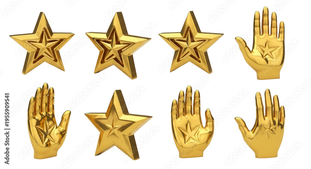 gold stars and hands a reward or recognition against a clean white background achievements #1955909541