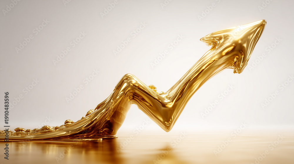 Golden Arrow Ascent: A shimmering golden arrow ascends dynamically, symbolizing growth, progress, and the achievement of ambitious goals. #1910483596