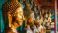 Golden Buddha statues radiating divinity at a traditional temple in Thailand - representing the richness of Buddhist art and culture." #750624031