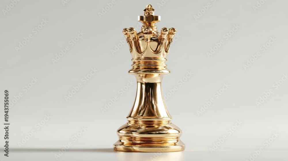 Golden Chess Piece Isolated on Light Background for Game Concept #1943755069