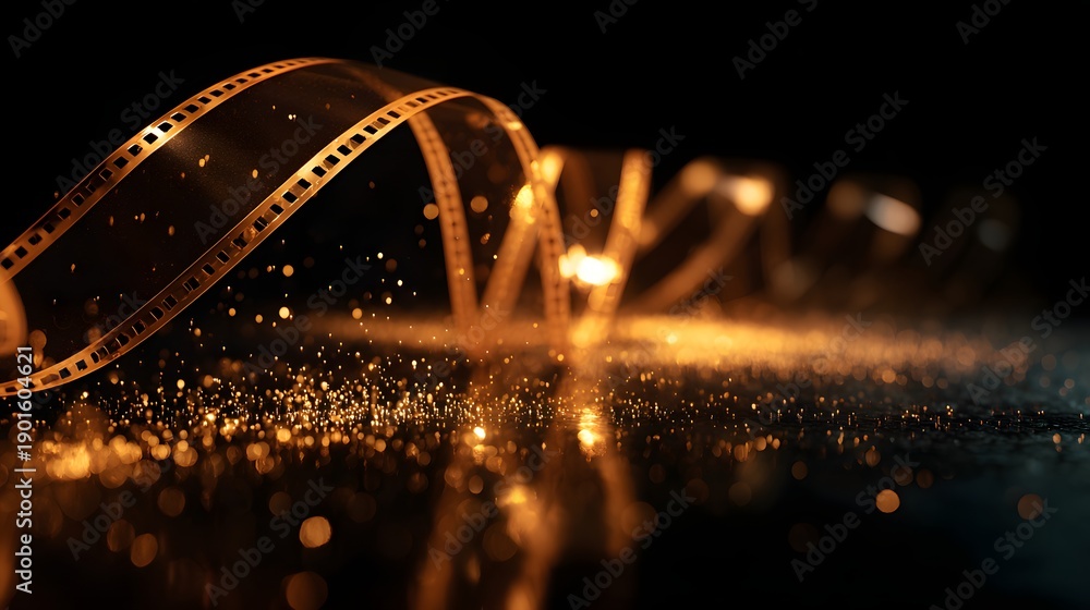 Golden Film Strip - A Cinematic Journey Through Time and Memory, Capturing Moments in Light. #1901604621