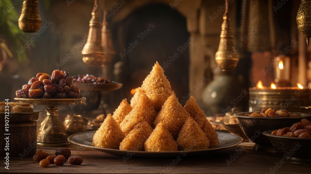 Golden Fried Treats Arranged In A Pyramid Shape #1907123344