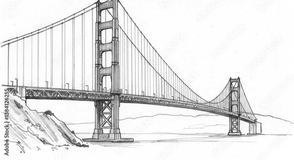 Golden Gate Bridge Suspension Cable Sketch #1384126255