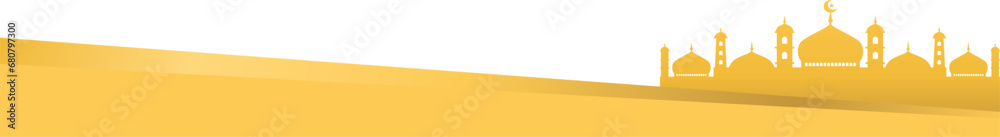 Golden mosque islamic footer border frame for ramadan or eid mubarak greeting decoration #680797300