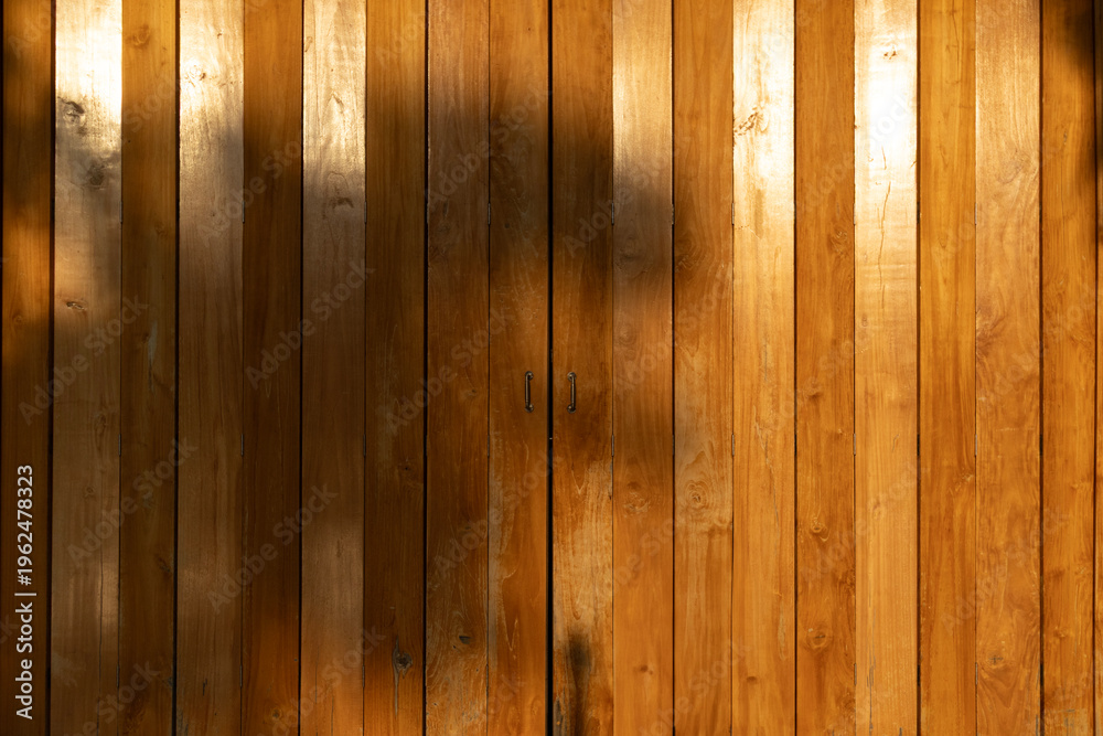 Golden Padauk Wood Door with Tree Shadow Sunlight #1962478323