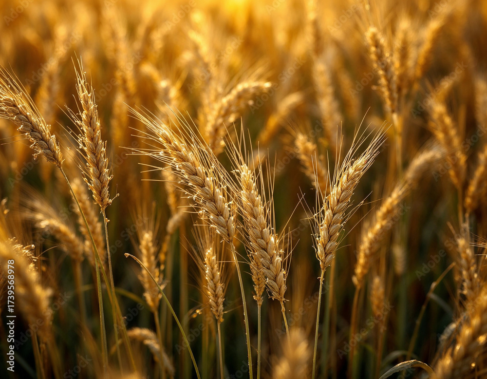 Golden wheat field glows under the warm sunlight, perfect for harvest season designs and agricultural projects celebrating nature's bounty #1739568978