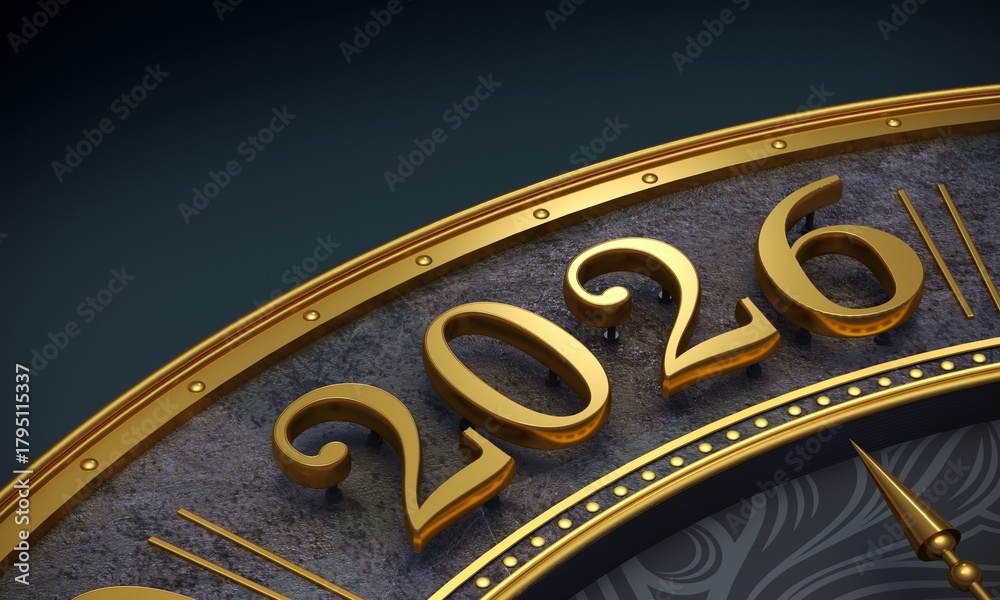 Golden 2026 Year Numbers on Vintage Clock #1795115337