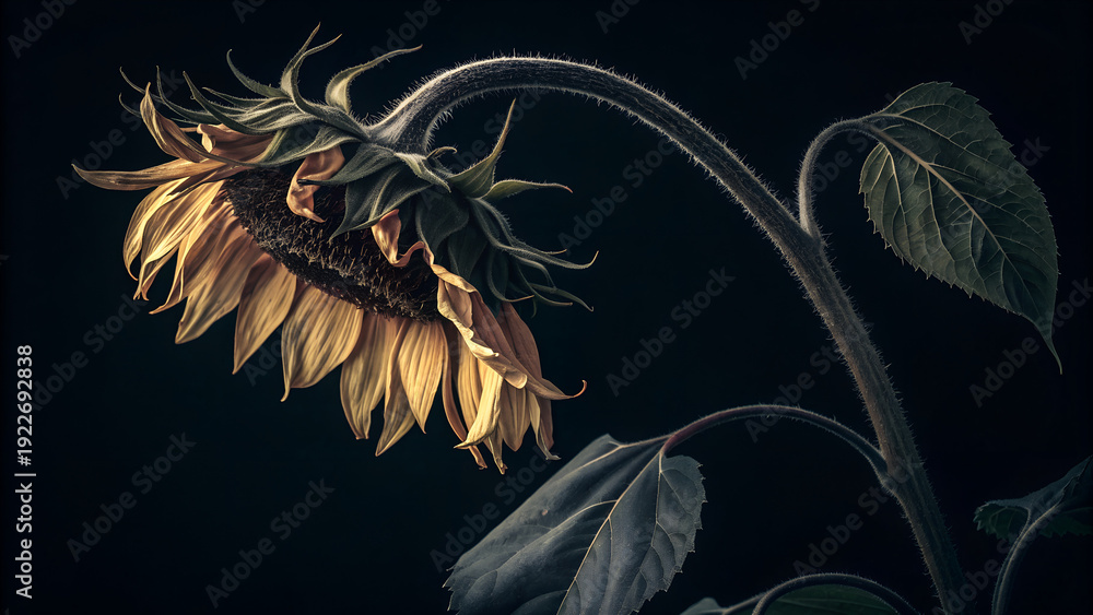 Gothic Wilted Sunflower — Dark, moody, partially decayed petals on black. #1922692838